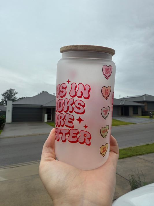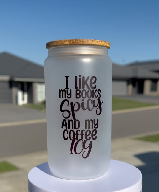 I like my books spicy and my coffee icy 16oz Frosted Glass Tumbler