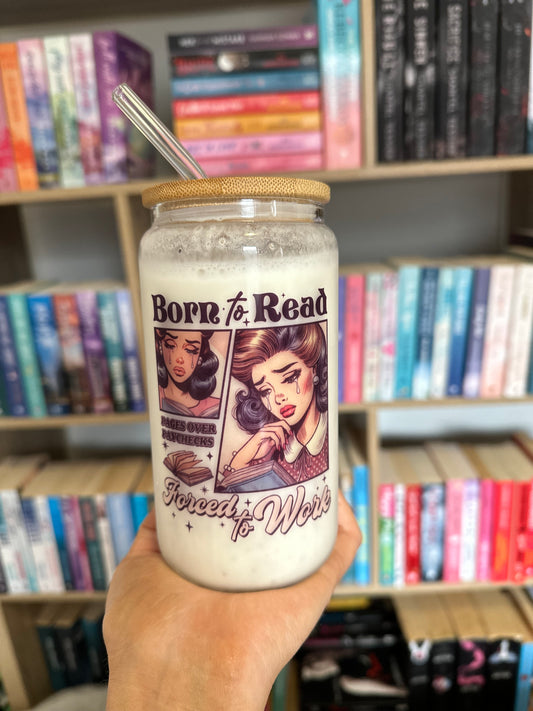 ‘Born to Read Forced to Work 16oz Glass Tumbler